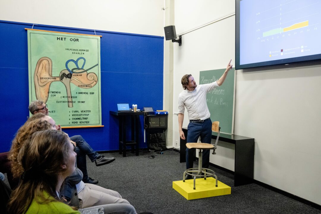 We maakten het programma als een ouderwets lesrooster. Met verschillende vakken (thema’s) en klaslokalen (plenair programma en subsessies). Presentatieduo Eveline van Rijswijk en Marianne Minnecré, programmacoördinator van het NP Onderwijs, openden de schooldag. Ze spraken met docent Manon Janssen,basisschooldirecteur Mariska Wubben, arts Maatschappij en Gezondheid Anja Schreijer (destijds lid van het OMT), en hoogleraar cocreatie en evaluatie in het onderwijs Inge de Wolf (mede-oprichter van het OMT onderwijs).